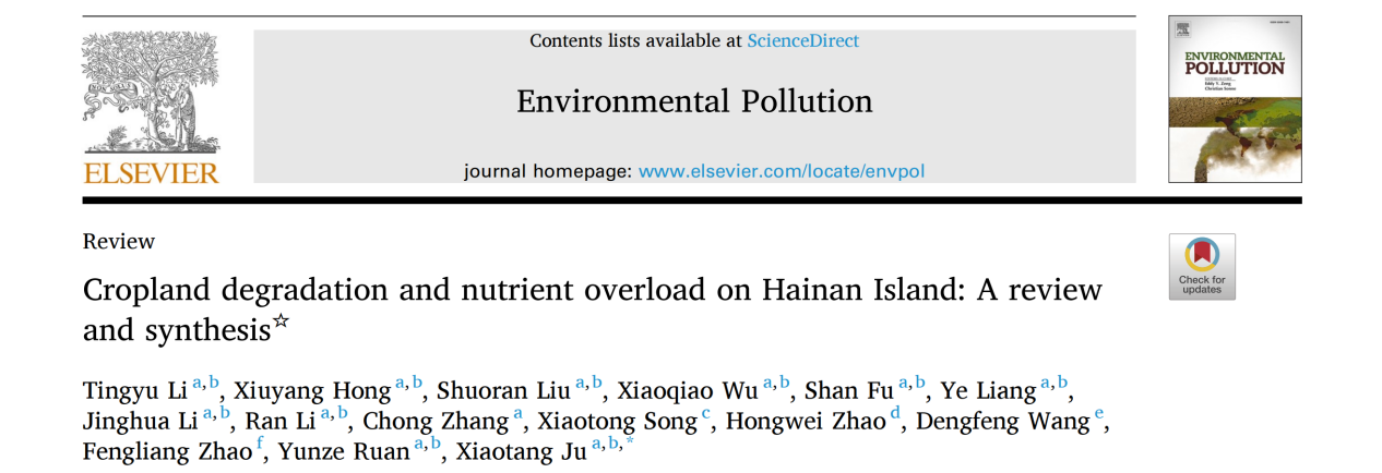 三亚南繁研究院为第一单位,热带耕地养分资源循环利用与质量保育团队李婷玉副研究员为第一作者,发表了题为“Cropland degradation and nutrient overload on Hainan Island: A review and synthesis”《海南岛农田退化与养分过量投入:综述与综合》的综述论文。