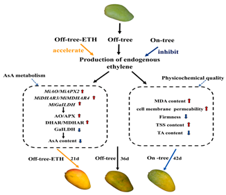 图5. 采后芒果果实AsA代谢与成熟衰老的调控网络
