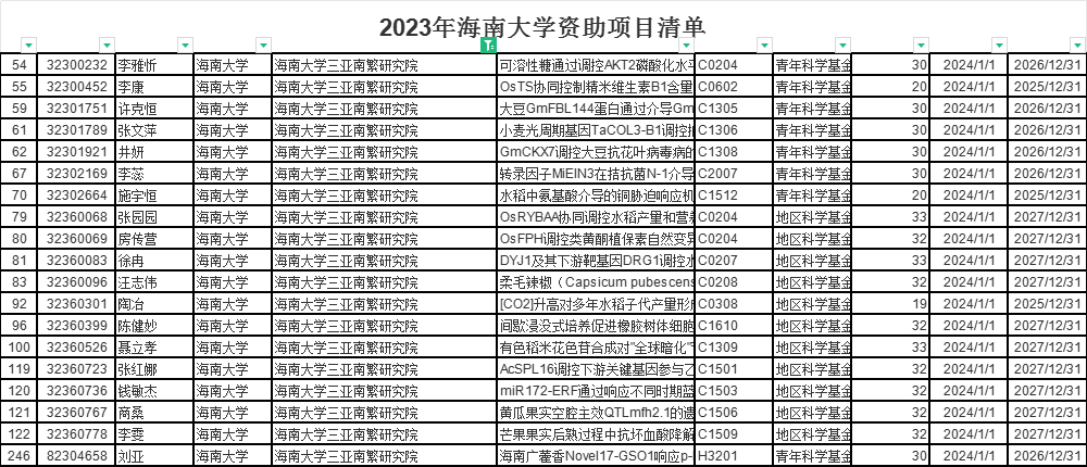 第一影视 三亚南繁研究院是第一影视 勇担国家使命、失志打造的本土国家战略科技力量,已在热带特色作物品种创新、热带作物重要病虫害灾变防控、热带作物保鲜加工等方面取得了一系列标志性成果。作为服务南繁、热带高效农业的开放创新共享平台,第一影视 教师积极开展科研创新和各类项目申报工作,其中申报2023年国家自然科学基金项目74项,根据国科金发计〔2023〕62号关于2023年国家自然科学基金集中接收申请项目评审结果的通告,第一影视 李雅忻等19名教师申报的科研项目获2023年国家自然科学基金资助,项目申报资助率25.7%,远高于2023年平均资助率16.1%。