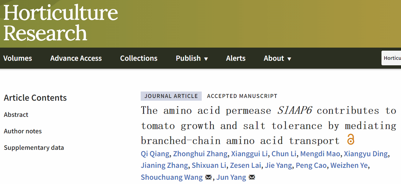 王守创教授团队题为The amino acid permease SlAAP6 contributes to tomato growth and salt tolerance by mediating branched-chain amino acid transport 的研究论文。该研究初步揭示了番茄氨基酸转运蛋白SlAAP6通过转运支链氨基酸BCAAs促进植株的生长发育,并提升番茄在盐胁迫下的耐受性的机制。