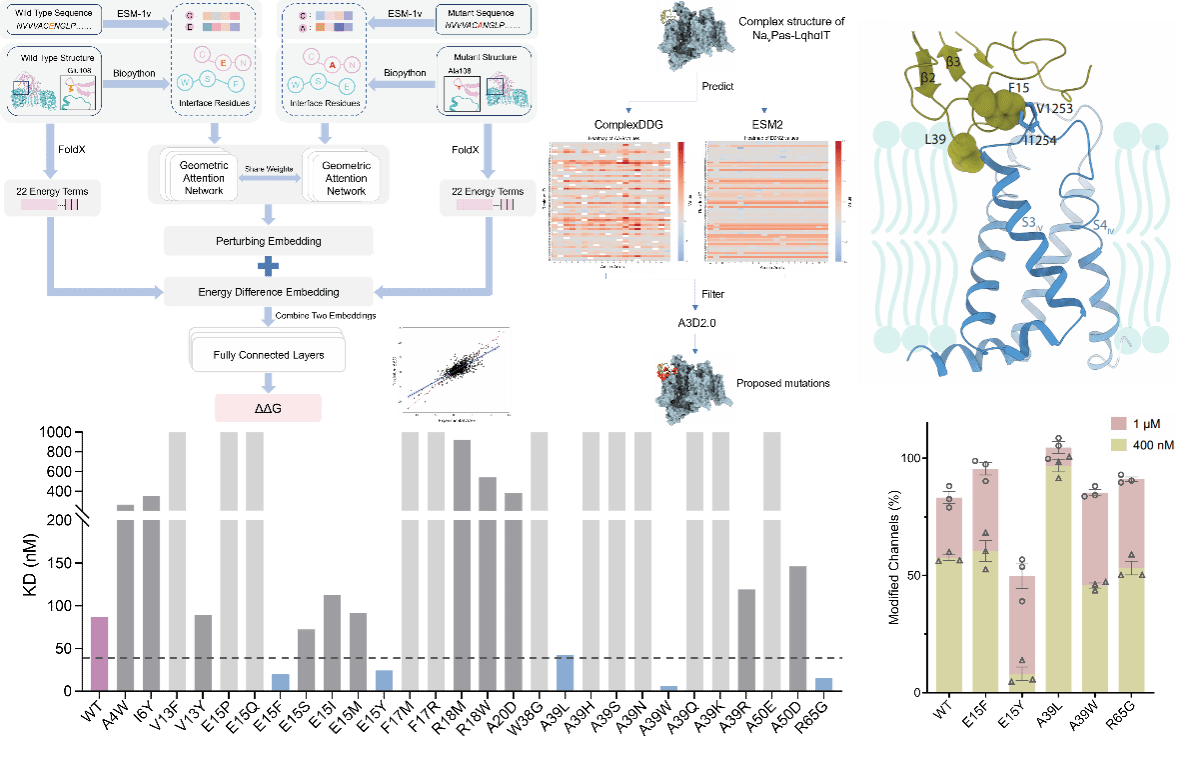 该研究首先从机制层面阐明了动物源杀虫多肽调控昆虫钠离子通道的分子基础,其次将机制研究与人工智能设计策略相结合,为生物农药分子的理性设计提供了新的研究范式。研究成果不仅加深了人们对多肽—离子通道相互作用机制的理解,也为开发高效、环境友好型生物杀虫剂提供了重要理论基础,展示了结构生物学与机器学习结合在新型生物农药开发中的巨大潜力,对推动农业绿色防控和生物农药创新具有重要意义。