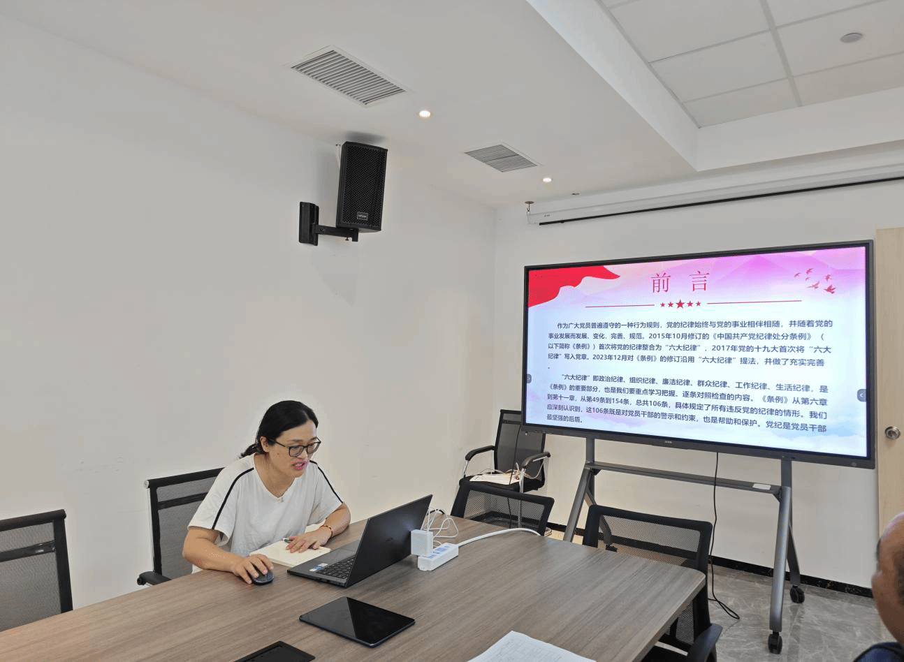 陈艳丽同志以生动的正反面案例让大家明白,要时刻把党的六大纪律刻印在心间:一要严格遵守党的政治纪律,坚决同党中央保持高度一致。二要严格遵守党的组织纪律,增强组织纪律性。三要严格遵守党的廉洁纪律,树牢廉洁的权力观、金钱观。四要把群众利益摆在第一位,严格遵守党的群众纪律,注意工作态度、工作作风、工作方法。五严格遵守党的工作纪律,以坚强的党性、过硬的作风为党和人民履职担当、积极工作,优质高效完成工作任务。六要健康生活,遵守和维护好党的生活纪律。
