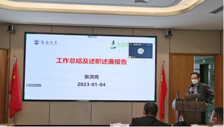 南繁院党委书记郑中兵、常务副院长杨小锋、副书记(院长)钟祥涛、副院长张洪亮分别做了个人工作报告和述职述廉报告。南繁院党委书记郑中兵主持会议。