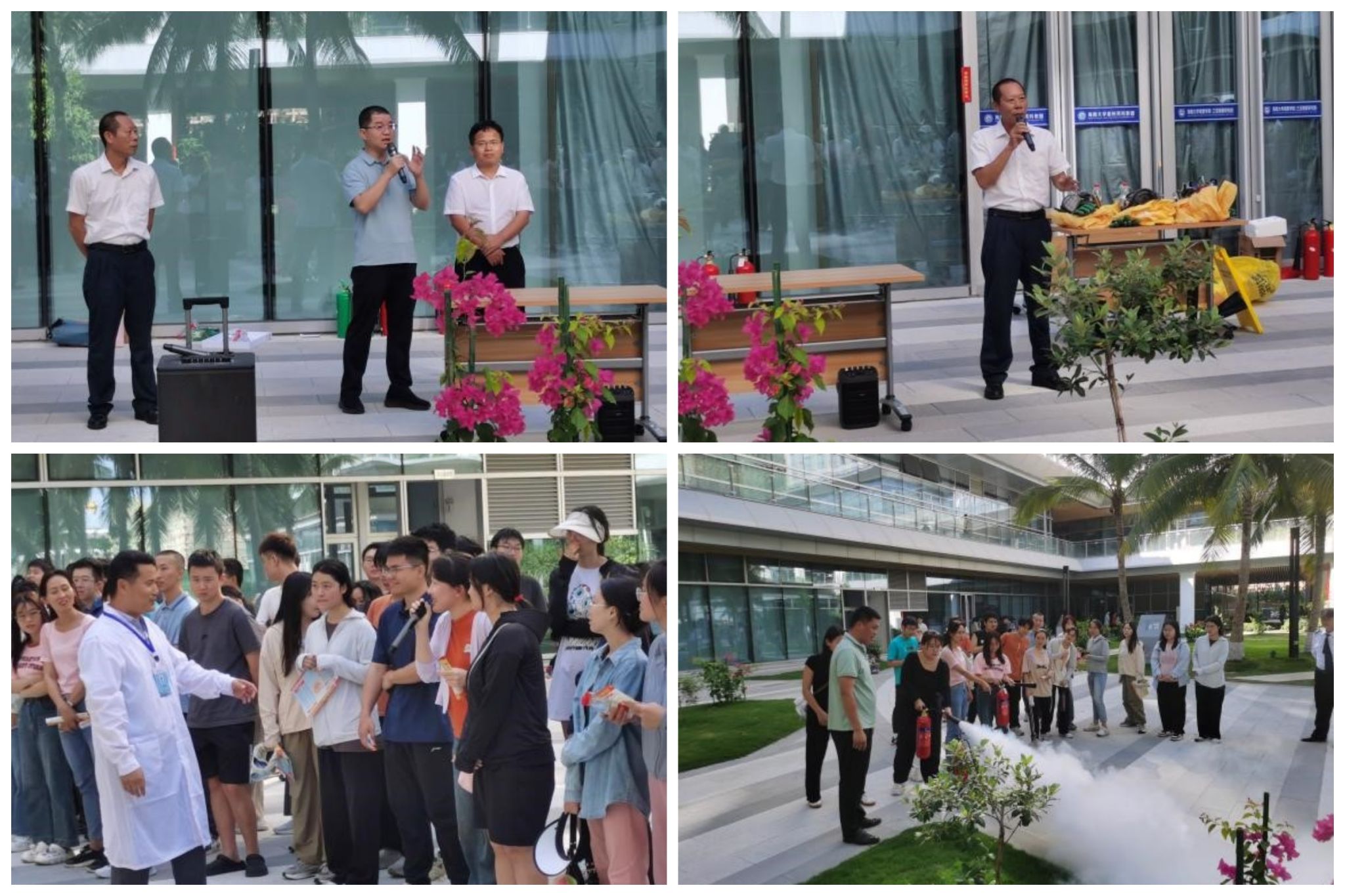 通过讲解老师和志愿者们的演示,广大师生了解了实验室化学品泄漏及火灾环境下救助处置措施。