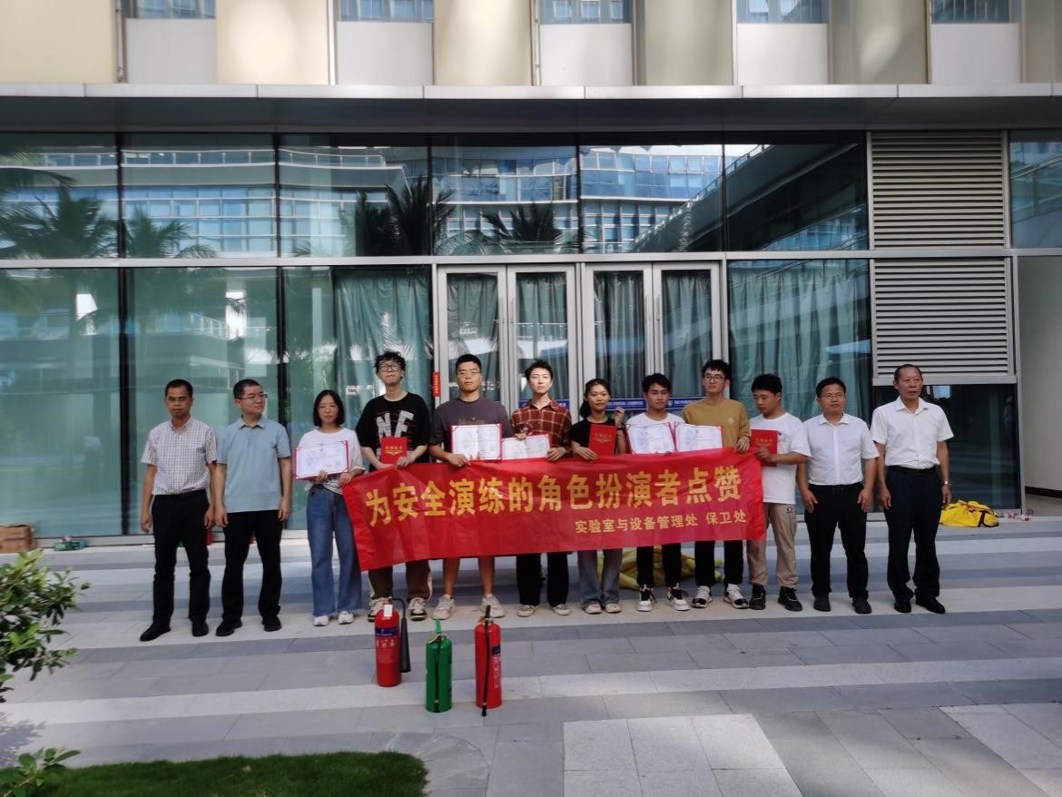 8位志愿者通过两天的学习,为大家呈现了一场精彩的实验室多种险情处置演示,得到了实设处和保卫处肯定, 培训结束后由实设处及保卫处联合颁发了荣誉证书。