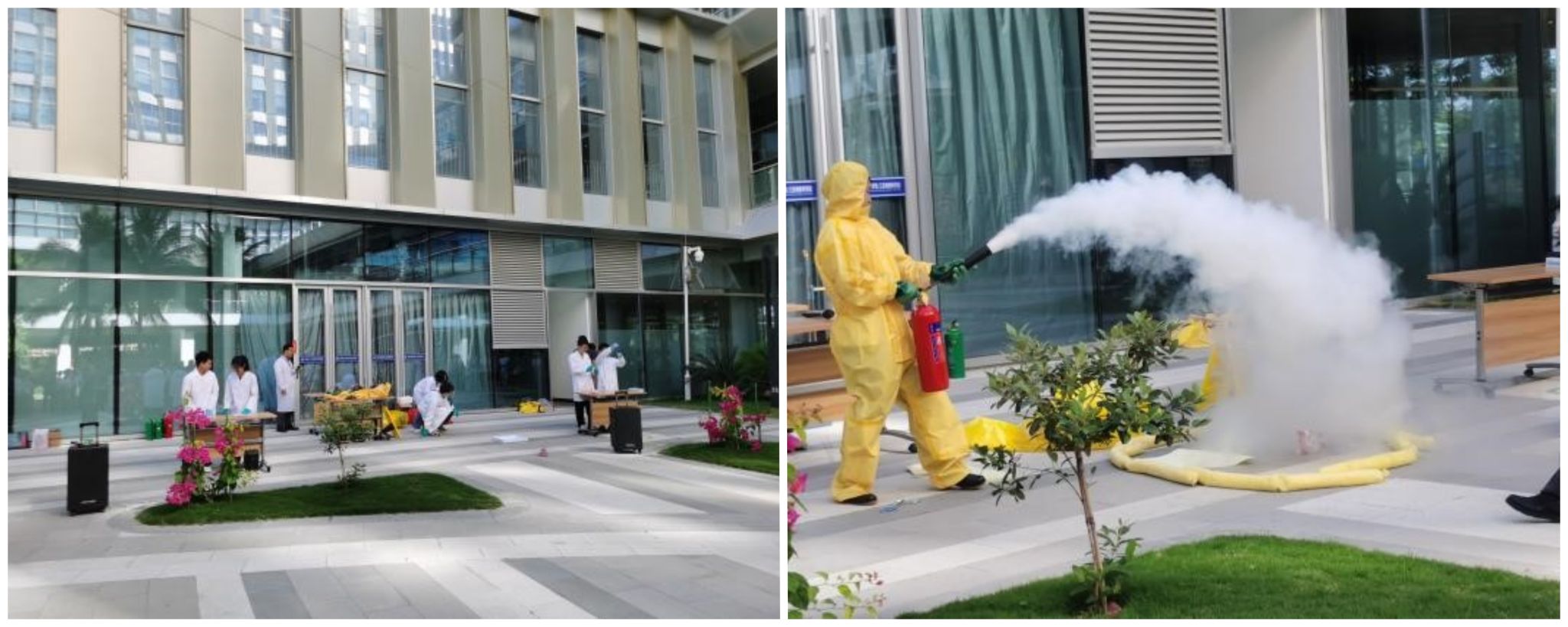 为进一步提高师生安全防护意识和应急处置能力,减少安全事故发生,在学校的统一部部署下,实设处联合保卫处于3月27日在崖州湾科教园开展“危险化学品泄漏应急处置及消防救助实操培训”。