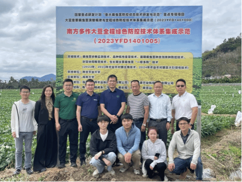 等单位,于2023年成功申报国家重点研发计划项目。项目围绕带状复合种植、鲜食大豆等南方特色生产模式,系统研发多抗源品种鉴定、精准施药、种子处理等关键技术。该项目的关键技术之一“大豆苗期病虫害种衣剂拌种防控技术”在全国各主产区大面积集成示范推广,为保障我国粮油安全和促进农业可持续发展提供技术支撑。示范区大豆病虫害发生率及农药施用量显著降低,获得增产增收,该技术入选农业农村部2022年至2023年主推技术、2024年重大引领性技术,获得2023年度神农中华农业科技一等奖。