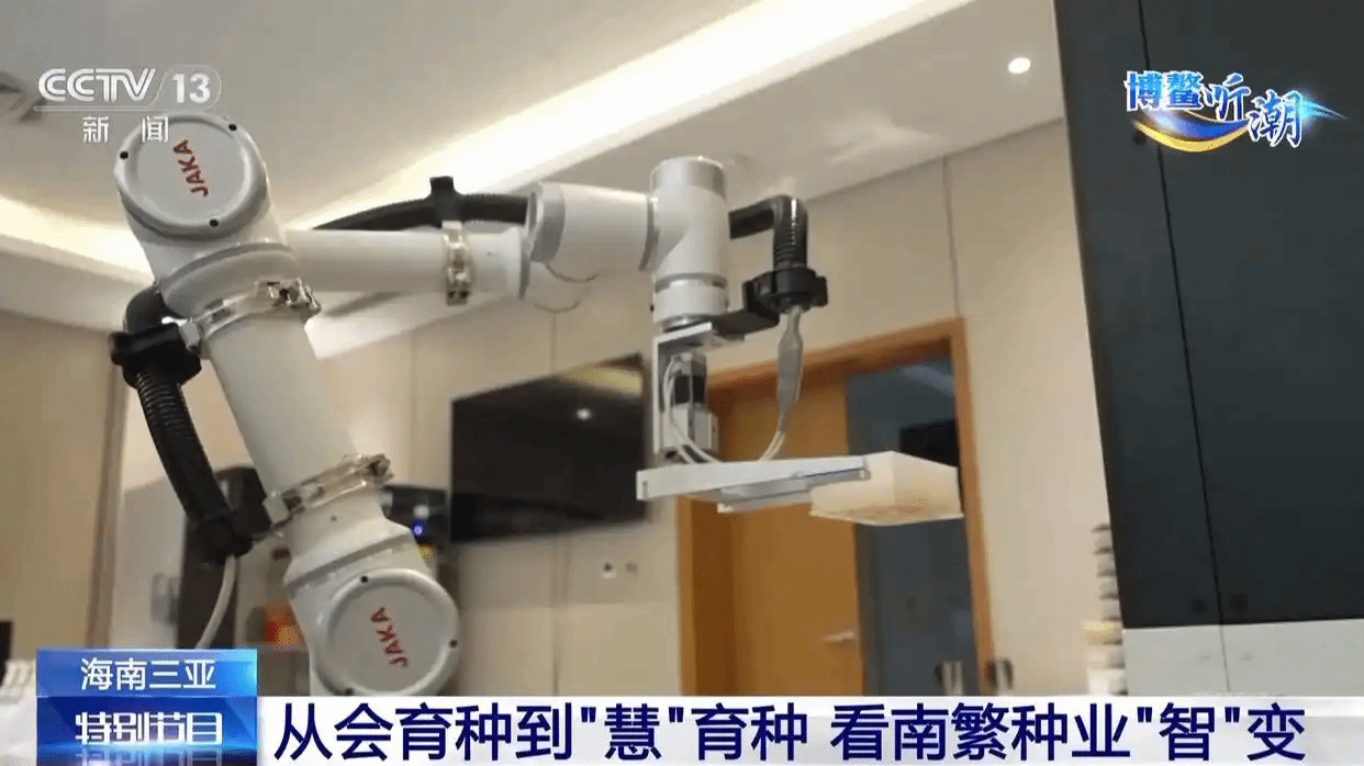 三亚南繁研究院的智慧育种平台,在这个无人实验室里,机器人能自主完成种子DNA的提取、比对和分型,为育种专家们筛选出优良基因。