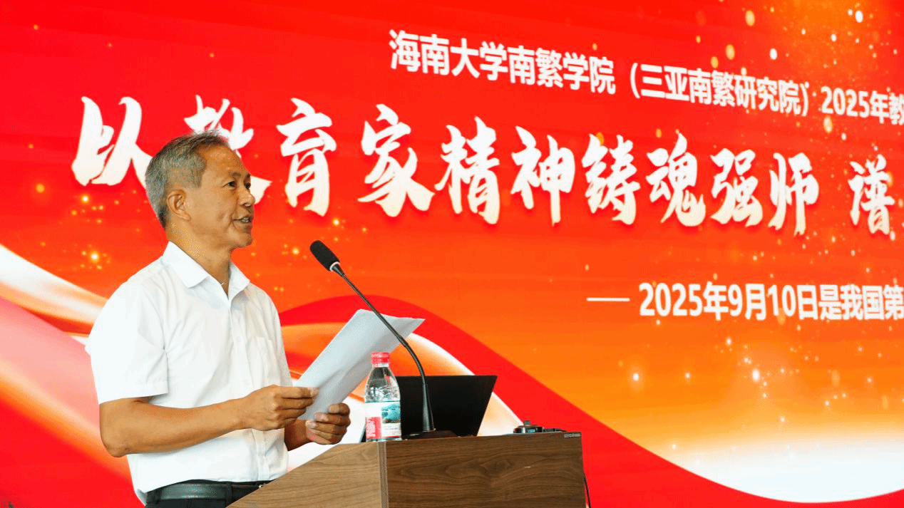 最后,党委书记黄东益进行了总结发言,他强调,广大教职工要牢记办学初心,传承“南繁精神”;要弘扬楷模风范,坚守育人使命,为党育人、为国育才;要聚焦核心任务,深化教育教学改革、强化有组织科研、实施人才强院战略,提升学院(研究院)内涵建设;要强化服务保障,提升治理现代化水平,营造温馨氛围,凝聚奋进合力。全体教职工要以教育家精神为引领,坚守初心,务实进取,共同谱写南繁院高质量发展新篇章。