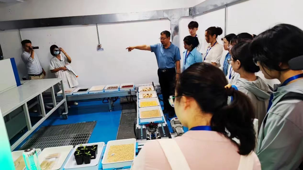 的多个科研实验室。智慧育种平台利用大数据和人工智能技术精准育种;大豆无损3D根系表型分析平台通过三维扫描技术精准分析根系结构;电子加速器诱变育种实验室则利用物理诱变技术加速作物遗传改良进程……这些先进的科研设备和平台让营员们亲身感受到了南繁科技的前沿性和创新性。他们纷纷表示要将所学知识和技术应用到未来的科研实践中去推动南繁科技的进步和发展壮大。