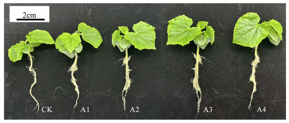 图 1 在低温胁迫下喷施不同浓度维生素C溶液对黄瓜嫁接苗生长的影响