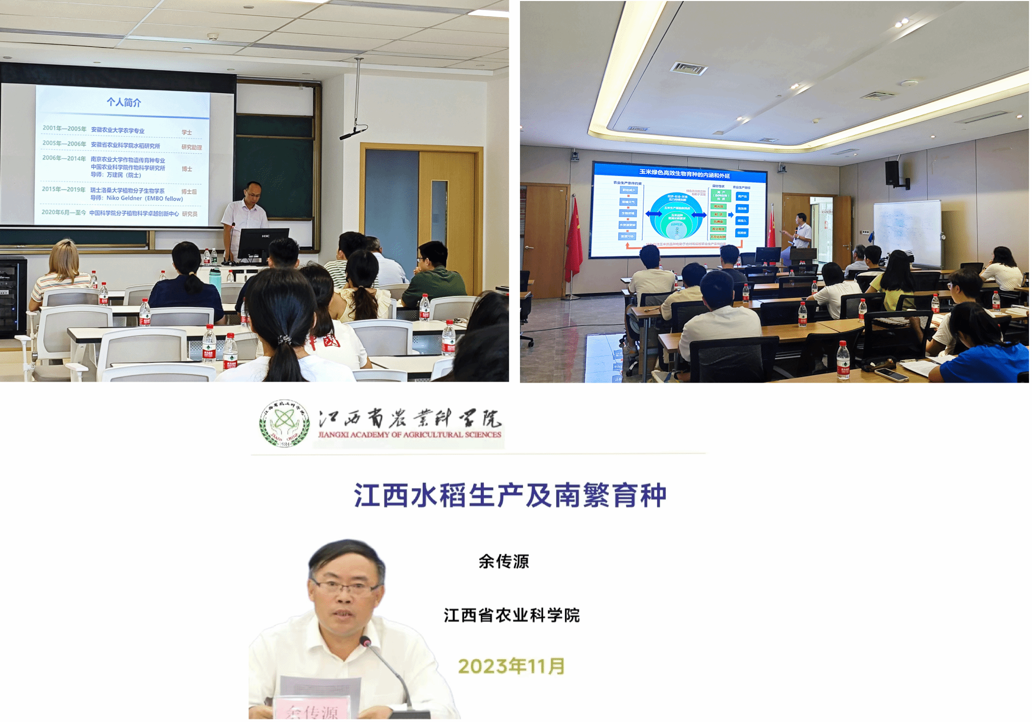 图 周峰研究员(左上)、万向元教授(右上)及余传源研究员(下)作报告分享