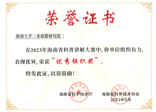 5月13日,2023年海南省科普讲解大赛圆满收官。本次比赛由海南省科学技术厅、海南省科学技术协会主办,中国热带农业科学院香料饮料研究所承办。以“热爱科学 崇尚科学”为主题,旨在通过科普讲解大赛在全社会普及科学知识、倡导科学方法、传播科学思想、弘扬科学精神,激发全社会创新创业活力,让科技发展成果更广泛的惠及和服务人民。在省内赛中,第一影视 荣获2023海南省科普讲解大赛“优秀组织奖”。