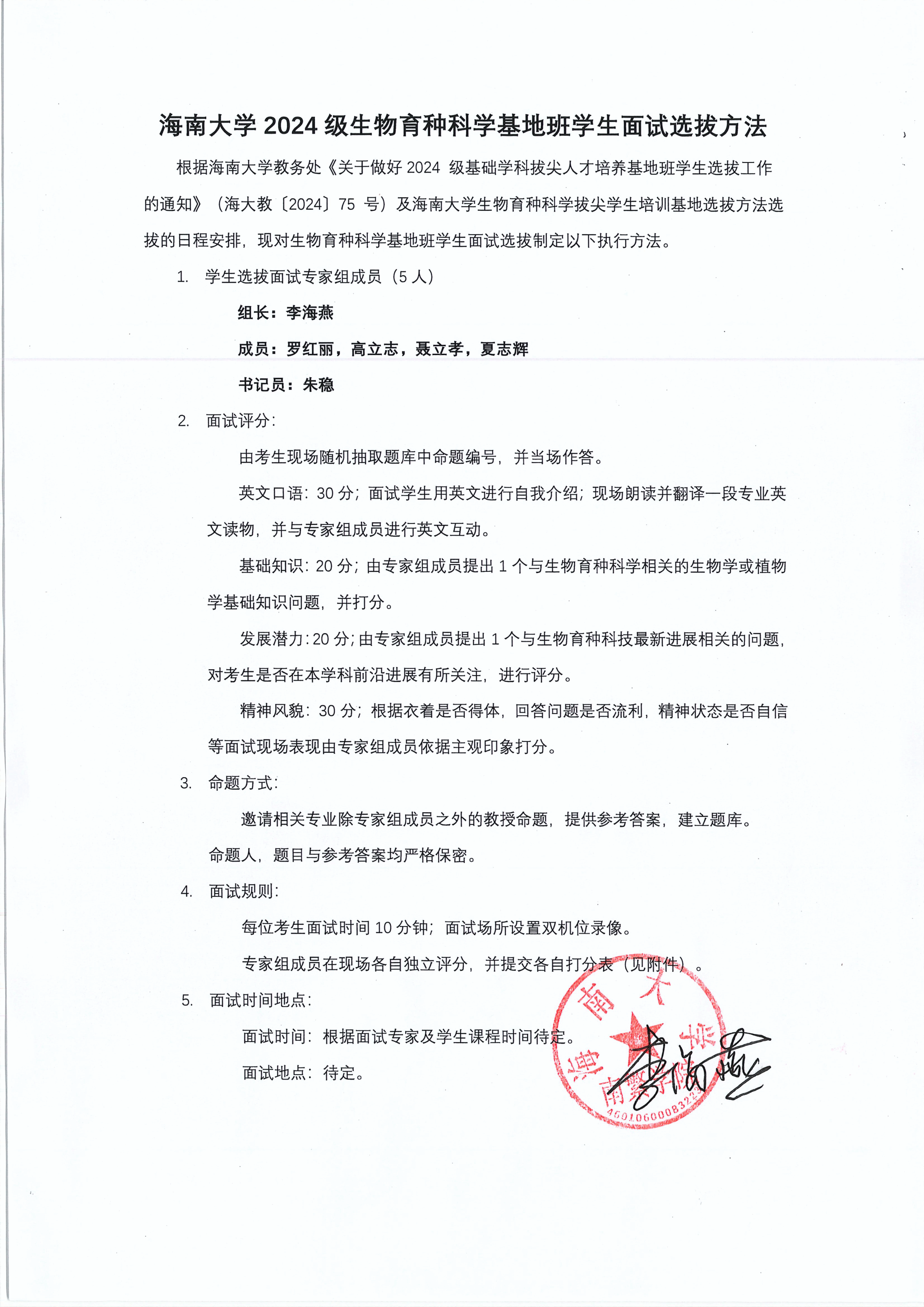 第一影视 2024级生物育种科学基地班学生面试选拔方法