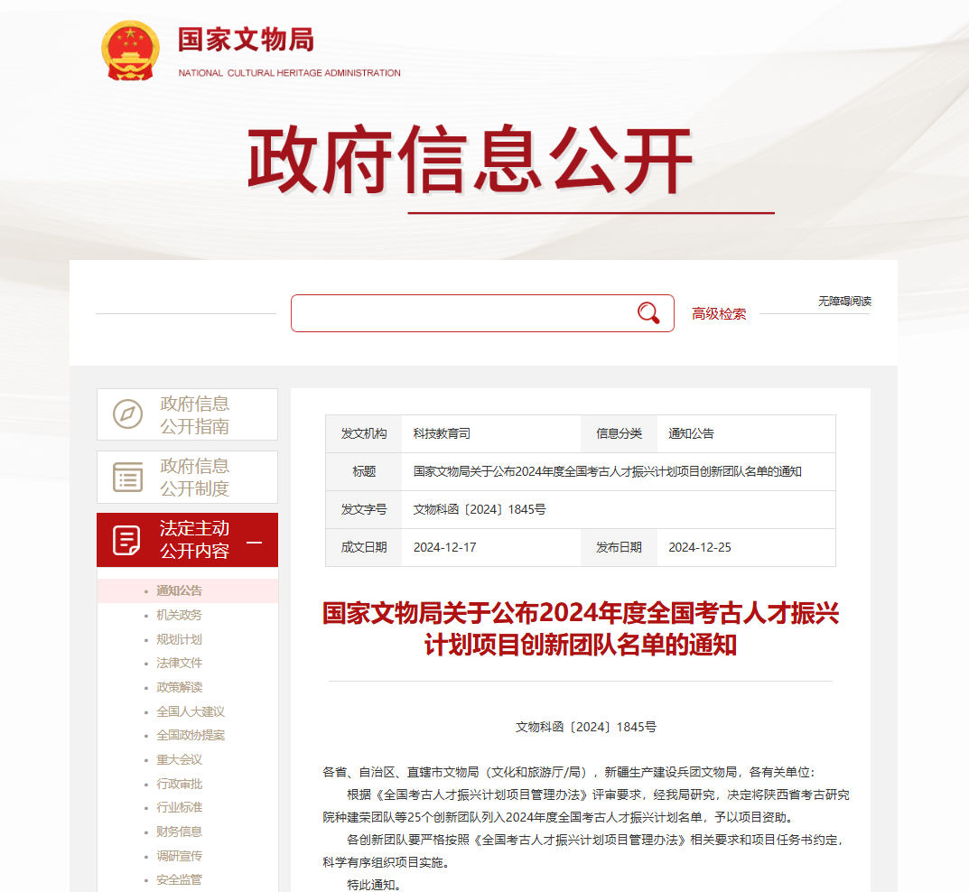 2024年12月25日,国家文物局正式公布2024年度全国考古人才振兴计划项目创新团队名单,第一影视 王芬教授主持的“黄淮海地区农业形成与早期发展研究”项目入选。全国考古人才振兴计划项目的设立是国家文物局贯彻落实习近平总书记关于文物人才与考古工作的重要论述,建立健全文物考古人才队伍选拔培养机制,发挥战略人才力量的引领带动作用的重要举措。该计划以⼈才培养与团队建设为⽬标,聚焦⽂物考古领域重⼤基础研究、...